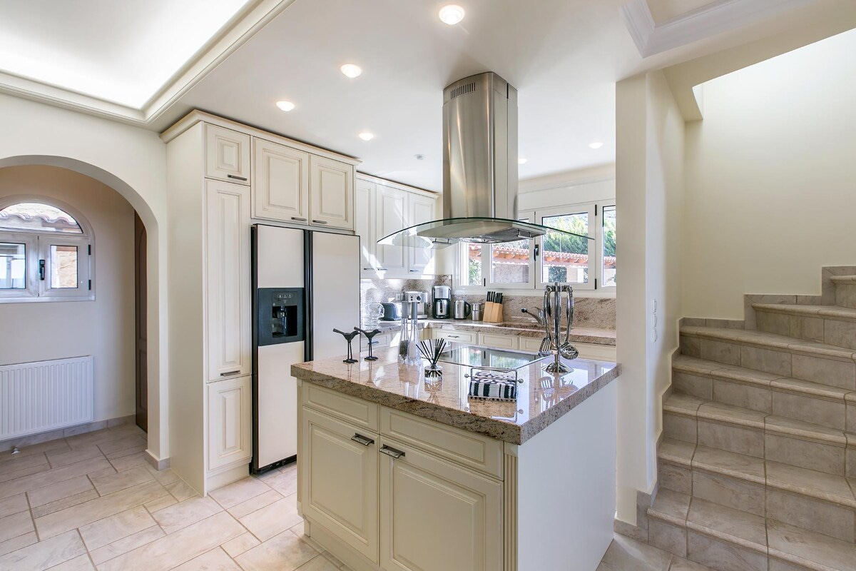 Villa Melia Athenian Riviera is a stunning retreat located in Palaia Fokea, just 300 meters from the sea, offering a perfect blend of traditional Mediterranean architecture and comfort.
